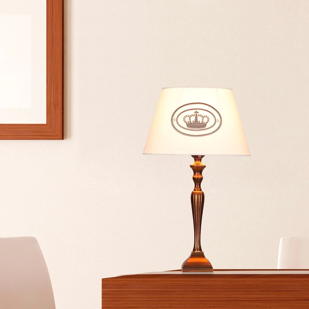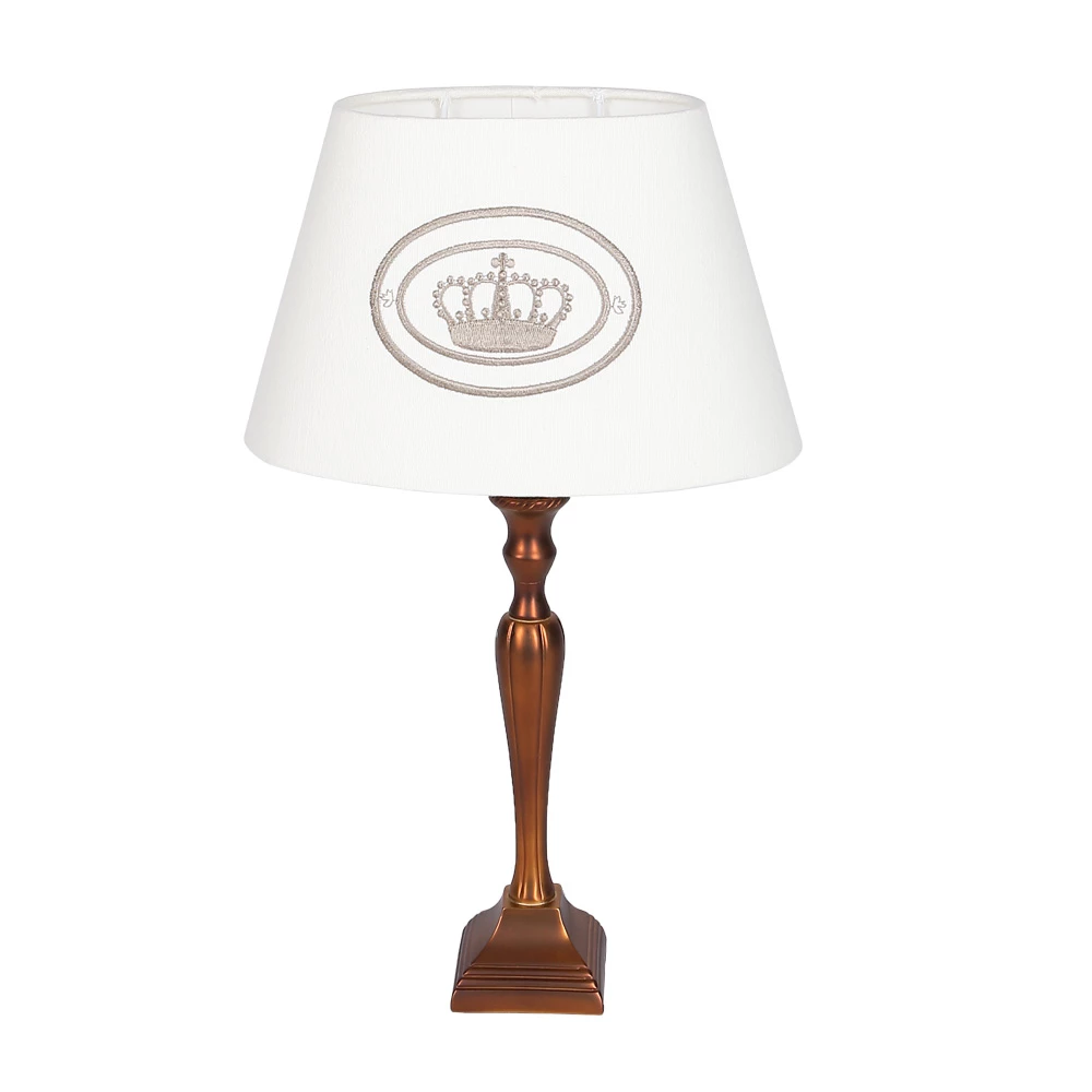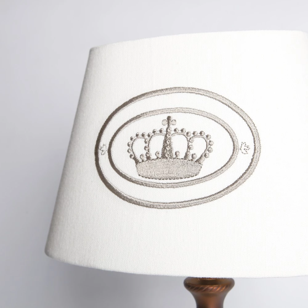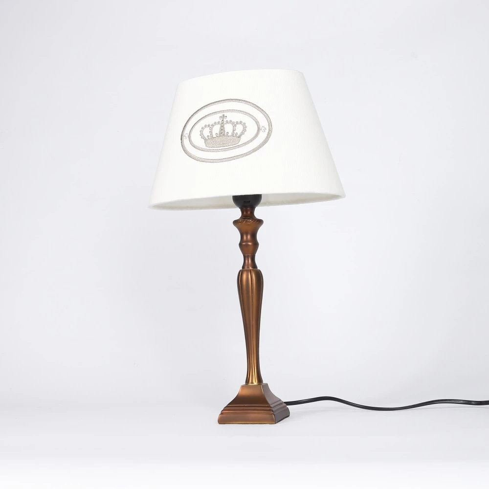 Den Lampenschirm ziert ein edles, aufgesticktes Kronenmotiv. In einem klassischen Ambiente fühlt sich die Wohn- oder Schlafzimmerleuchte besonders wohl und eignet sich hervorragend auch als Leseleuchte .