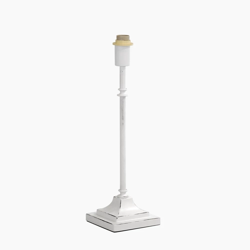 Antik gestalteter Leuchtenfuß aus Stahl in Weiß mit Patina.