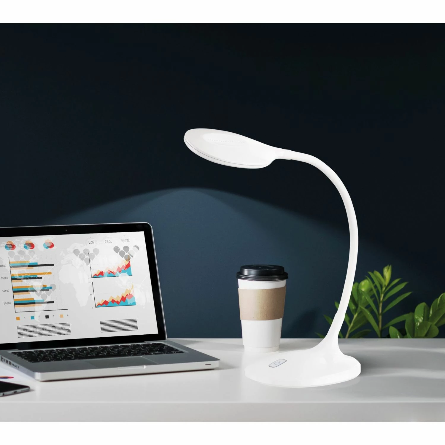 Moderne Tischlampen sich nicht nur eine Lichtquelle in den Abendstunden, sondern sie sind auch ein Dekoelement in Ihren Räumen. Mit ihrem indirekten Licht und den flexiblen Einstellungsmöglichkeiten erzeugt unsere Tischleuchte eine angenehme Atmosphäre in jedem Raum – zum Lesen, zum Arbeiten oder einfach, um nach getaner Arbeit zu entspannen. Dimmbare Schreibtischlampe in drei Stufen Im Lampenfuß ist ein kleines, raffiniertes Feature eingebaut. Es handelt sich dabei um einen Sensordimmer, über den Sie die Helligkeit dieser Leuchte individuell einstellen können. Per Touch sind drei Stufen zwischen hellem Licht und gemütlichem Schummerlicht wählbar. Wo ist der beste Platz für eine Tischleuchte? Aufgrund ihrer hohen Flexibilität können Sie die Tischleuchte an verschiedenen Orten nutzen. Klassisch als Leselampe auf dem Nachttisch oder auf dem Beistelltisch platziert, kann sie auch auf den Schreibtisch gestellt werden, um zu später Stunde den Arbeitsbereich optimal auszuleuchten. Auch als Deko-Element erfüllt diese geschwungene Leuchte ihre Funktion. Tischleuchte als Dekoelement in jedem Raum In ihrer harmonischen Form ist diese Leuchte für den Tisch ein dekoratives Accessoire in jedem Raum. Die schnörkellose Verarbeitung aus weißem Kunststoff macht die Leuchte zu einem pflegeleichten und sehr dekorativen Raumelement in Ihren Privat- oder Büroräumen. Wir freuen uns auf Ihre Bestellung und wünschen Ihnen viel Freude mit unserer Klemmleuchte. FUTURISTISCHE TISCHLEUCHTE: Auf der Suche nach einer stylischen Tischleuchte mit kleinen Features? Diese Schreibtischlampe spendet nicht nur Licht, sondern ist auch noch hochgradig dekorativ.