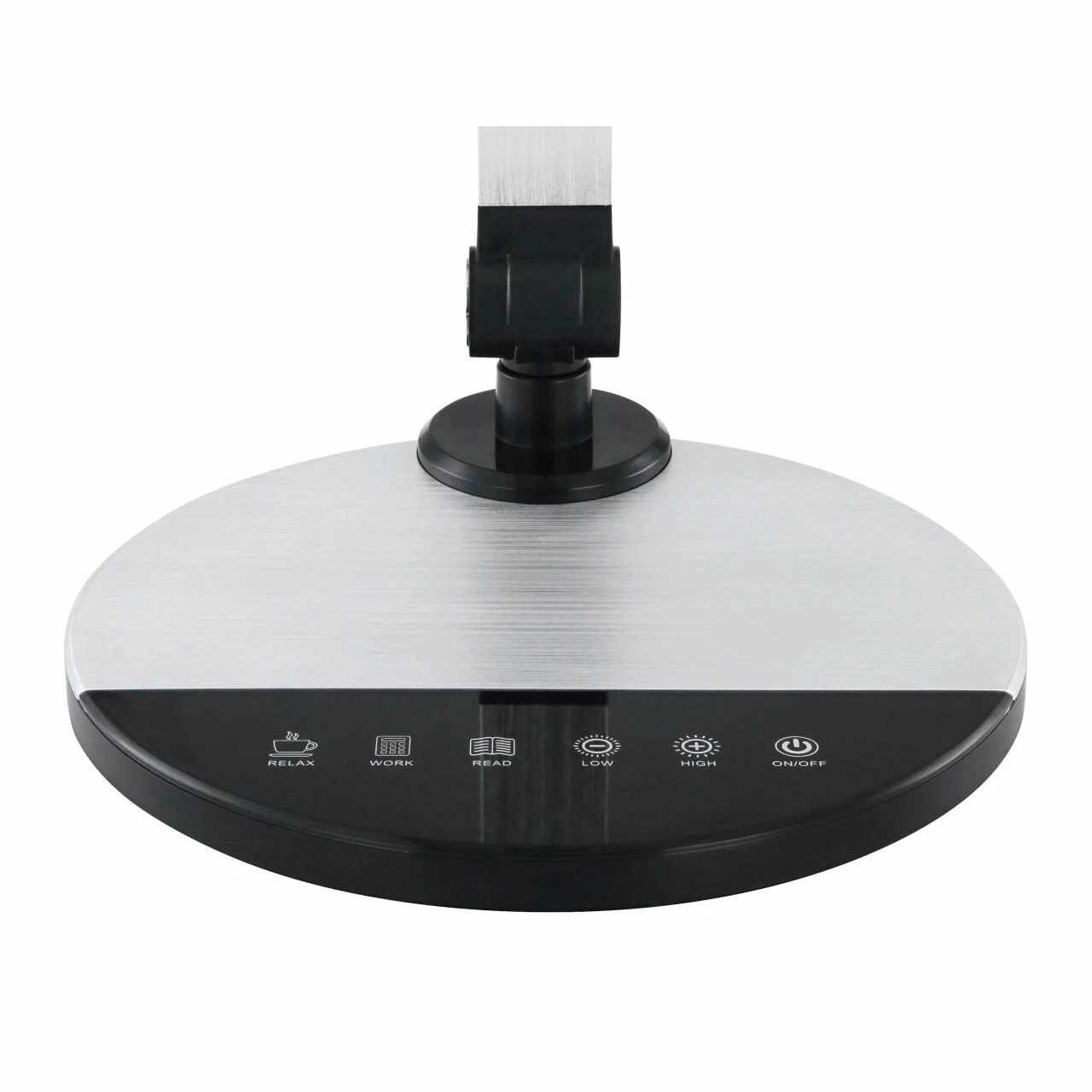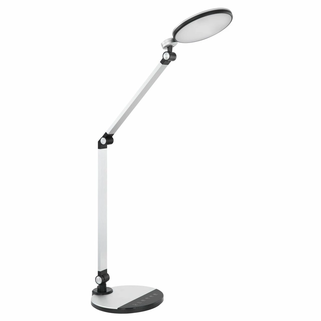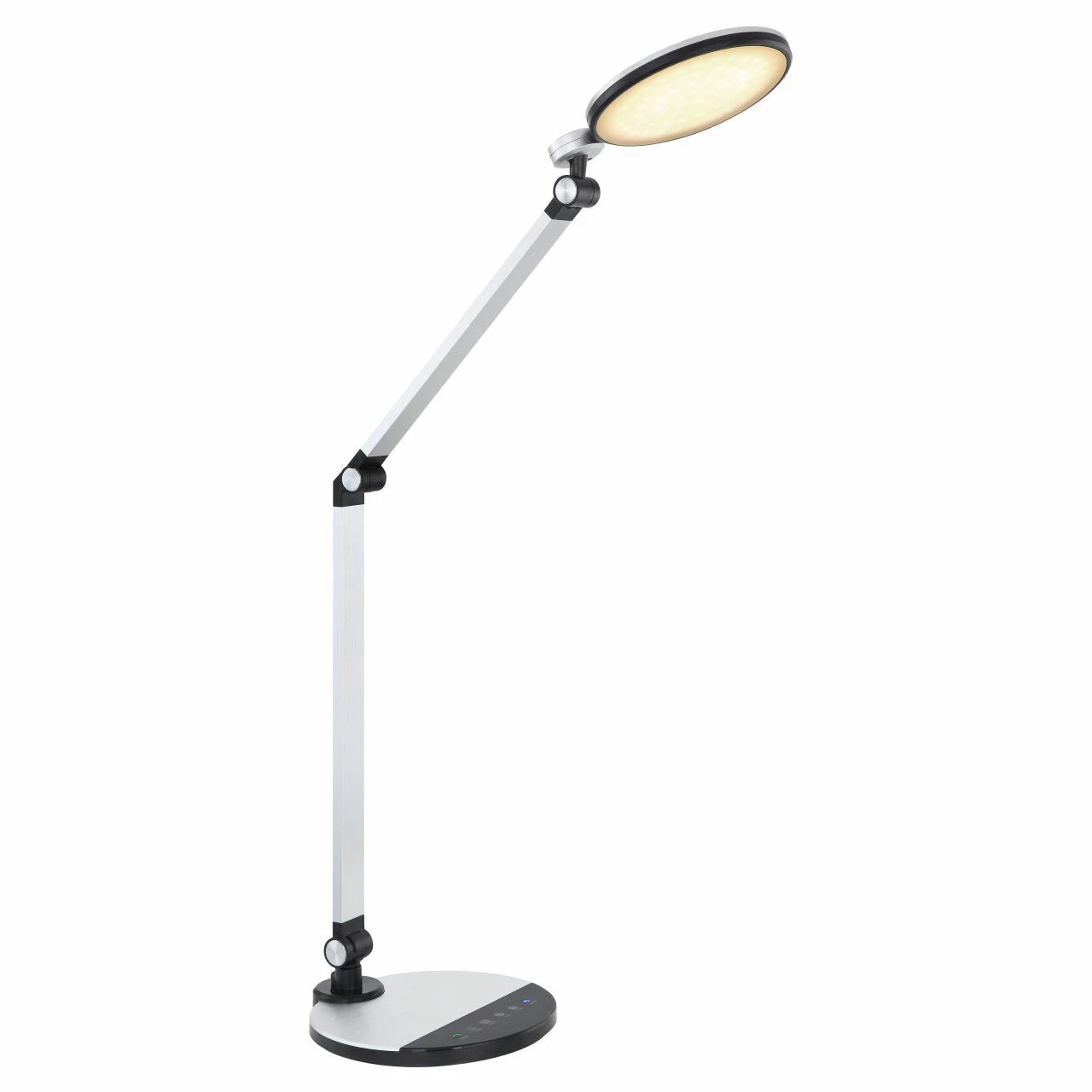 Tischleuchte Kunststoff schwarz, Aluminium gebürstet silberfarben, Kunststoff satiniert, 3 Gelenke, drehbar, Kabel 1,3m, dimmbar, Farben fixierbar, Touch ein/aus, Touchdimmer, LxBxH:500×192×905, inkl. 1xLED 10W 230V, 825lm Source, 605lm Output, CCT 3.000–4000-6.30