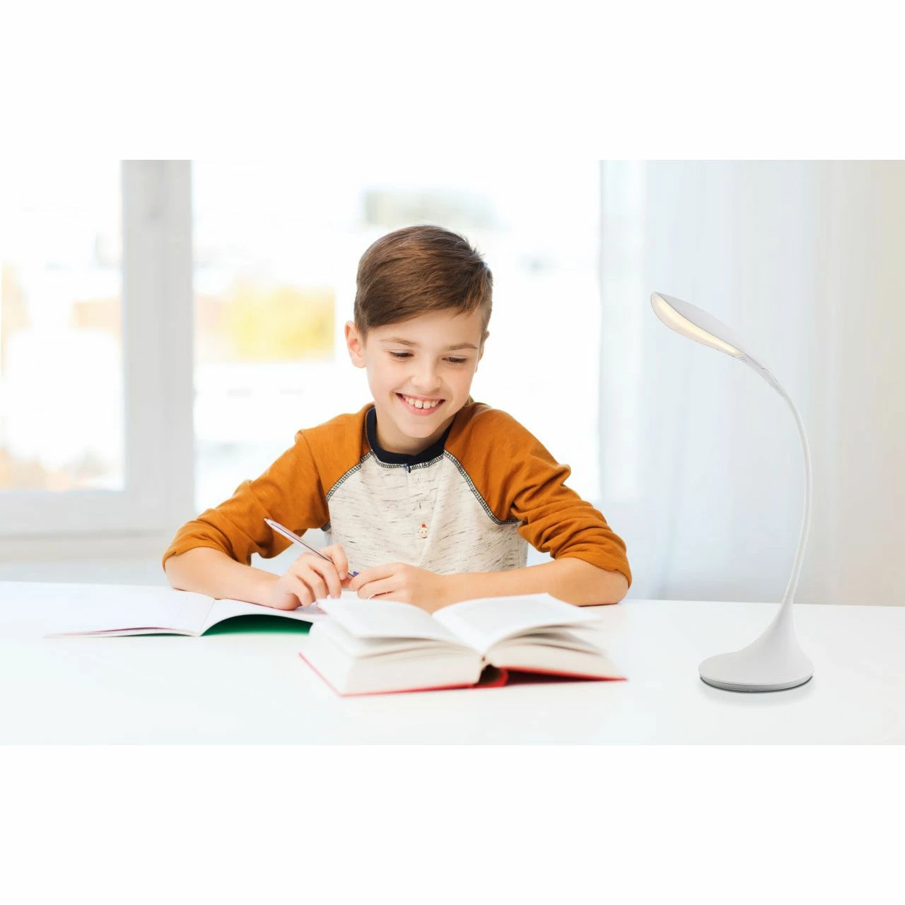 Diese elegante Tischlampe, aus der Serie, ist in einem schlichten Design gehalten, aber dennoch modern. Bei der Anfertigung dieser Lampe wurden ein schönes, weißes Metall, Acryl und Kunststoff gewählt. Der Spot ist verstellbar und dient somit einer individuellen Benutzung. Ebenfalls ist ein Touchdimmer vorhanden, der für die Regulation der Helligkeit zur Verfügung steht. Die Lichtfarbe von 3000K wird als angenehmes Warmweiß empfunden und die Lichtstärke von 400 Lumen wurde perfekt dazu abgestimmt. Ebenfalls lässt sich dieser Artikel sehr gut mit weiteren Produkten aus der gleichen Serie kombinieren.