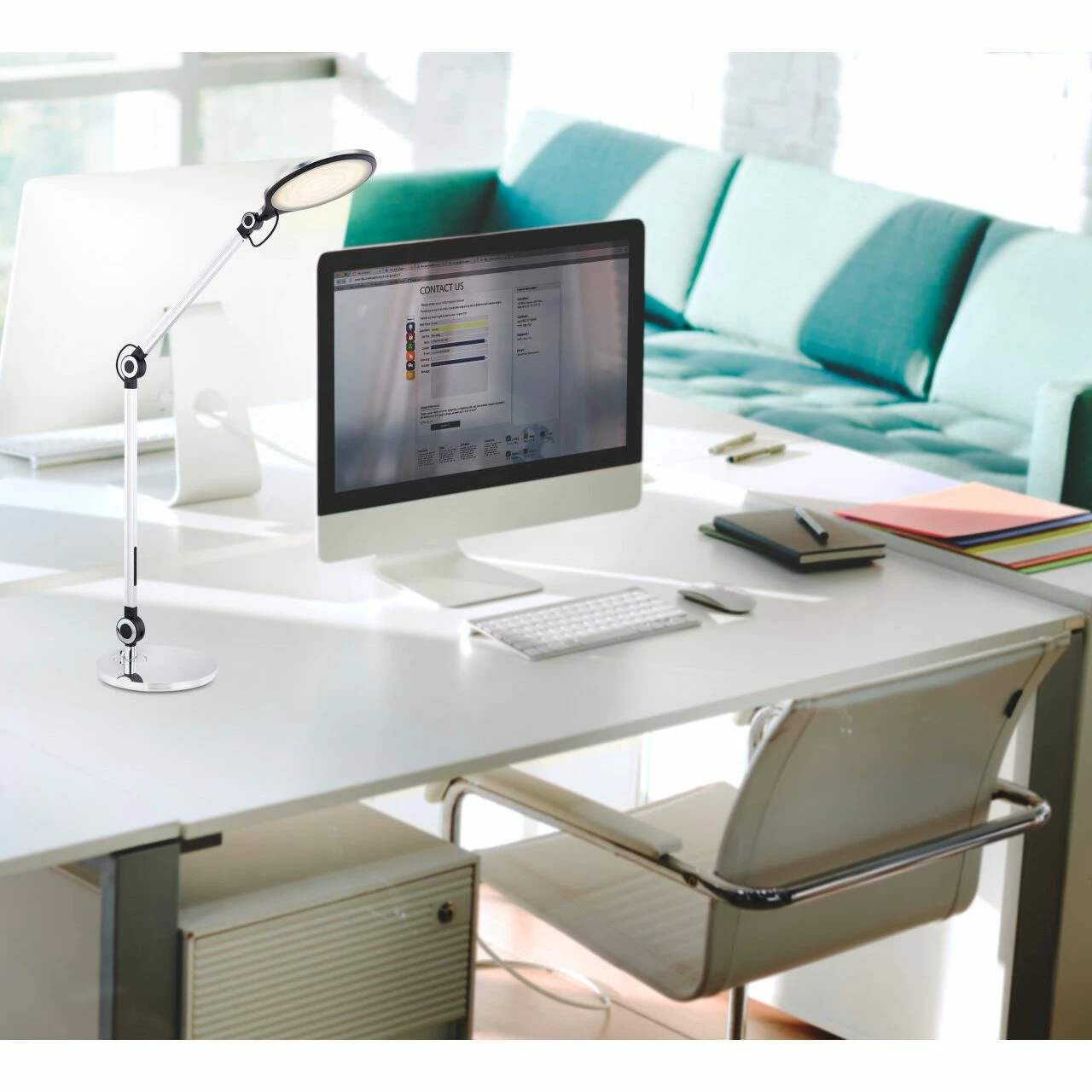 Diese formschöne Tischleuchte überzeugt durch ihre neutrale Materialkombination und schlichten Design. Durch das inkludierte 10 Watt LED Leuchtmittel leistet diese Lampe bis zu 660 Lumen starkes Licht. Die Gelenke sind individuell verstellbar und somit lässt sich der Leuchtenkopf wunderbar fokussieren. Mit der Touchfunktion und dem Touchdimmer wird das Ein-/Ausschalten dieser LED Lampe zu einem besondern Leuchterlebnis. Die Lichtsfarbe dieser 103,5 cm hohen Tischleuchte lässt sich von warmweißen (3000 Kelvin) bis hin zu kaltweißen (6000 Kelvin) verstellen und fixieren. Die Tischlampe erfreut mit Sicherheit jeden Besitzer mit ihrem einmaligen Charme.