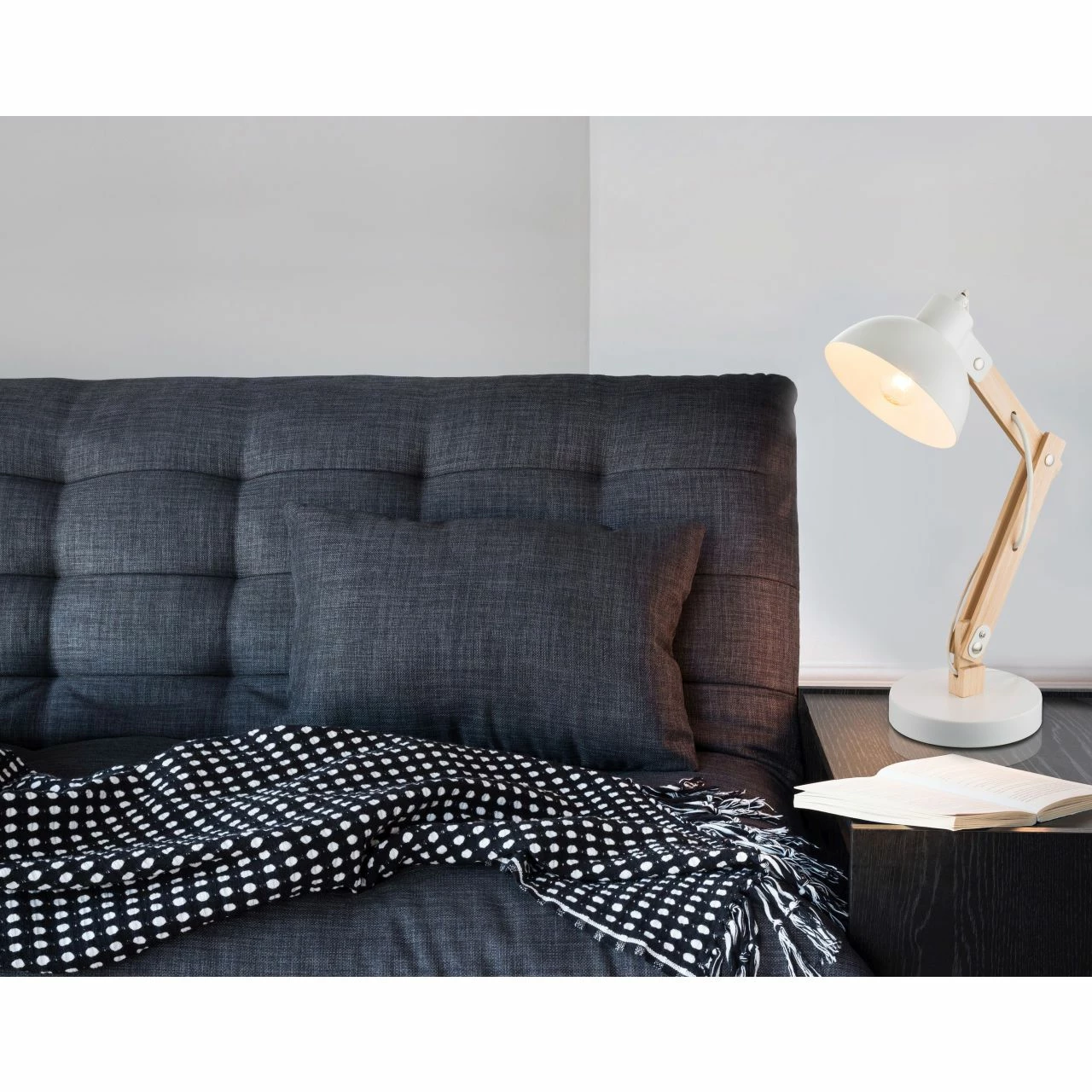 Die Tischlampe besteht aus hellem Holz und weißem Metall. Die E27 Fassung bietet Ihnen die Möglichkeit der freien Leuchtmittelwahl (max. 40W). Wir empfehlen Ihnen LED-Leuchtmittel aufgrund ihrer Stromersparnis und Langlebigkeit. Diese Lampe wird über einen On-Off-Schalter gesteuert und verfügt über ein Kabel mit 1,5 Meter Länge.