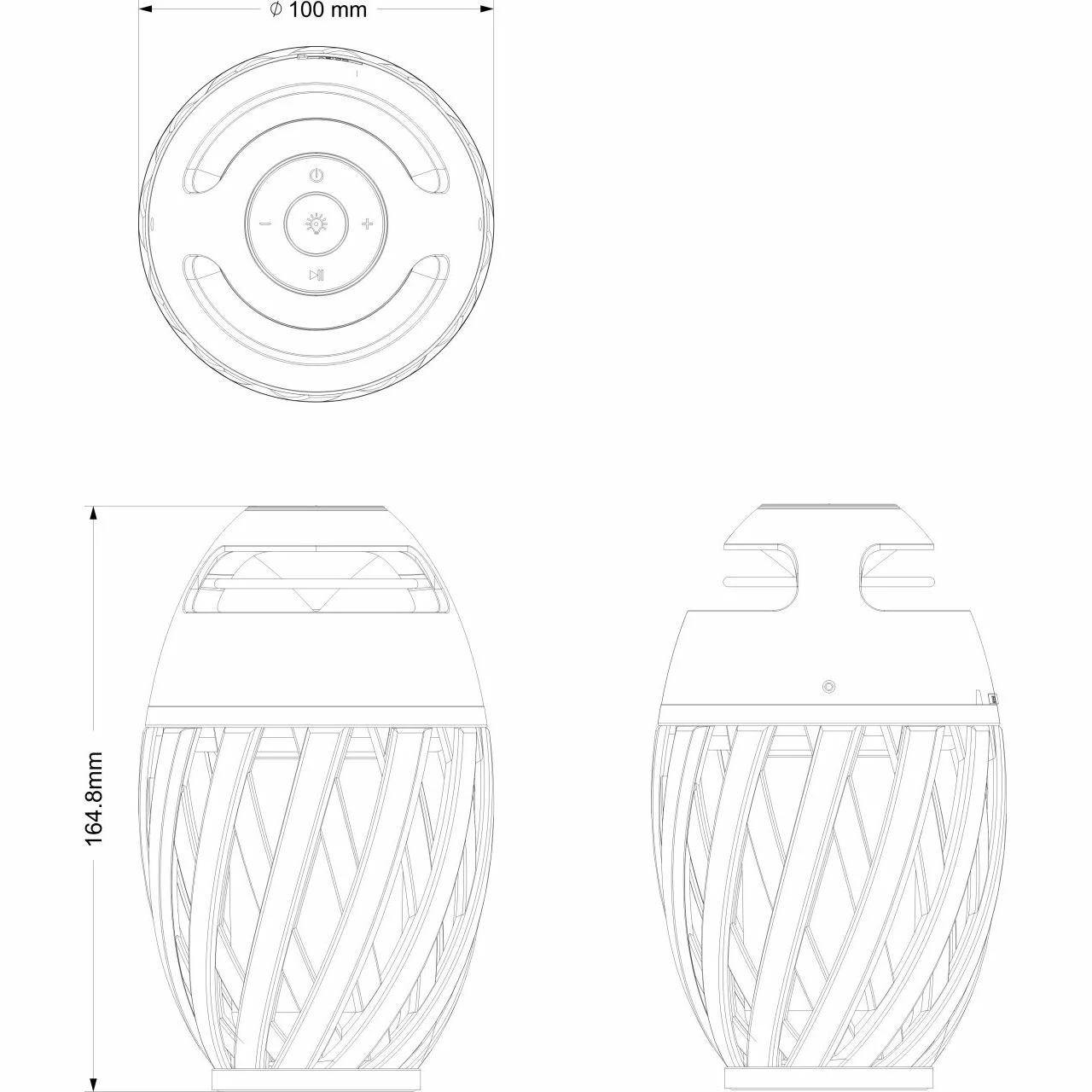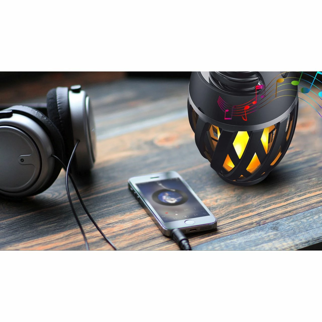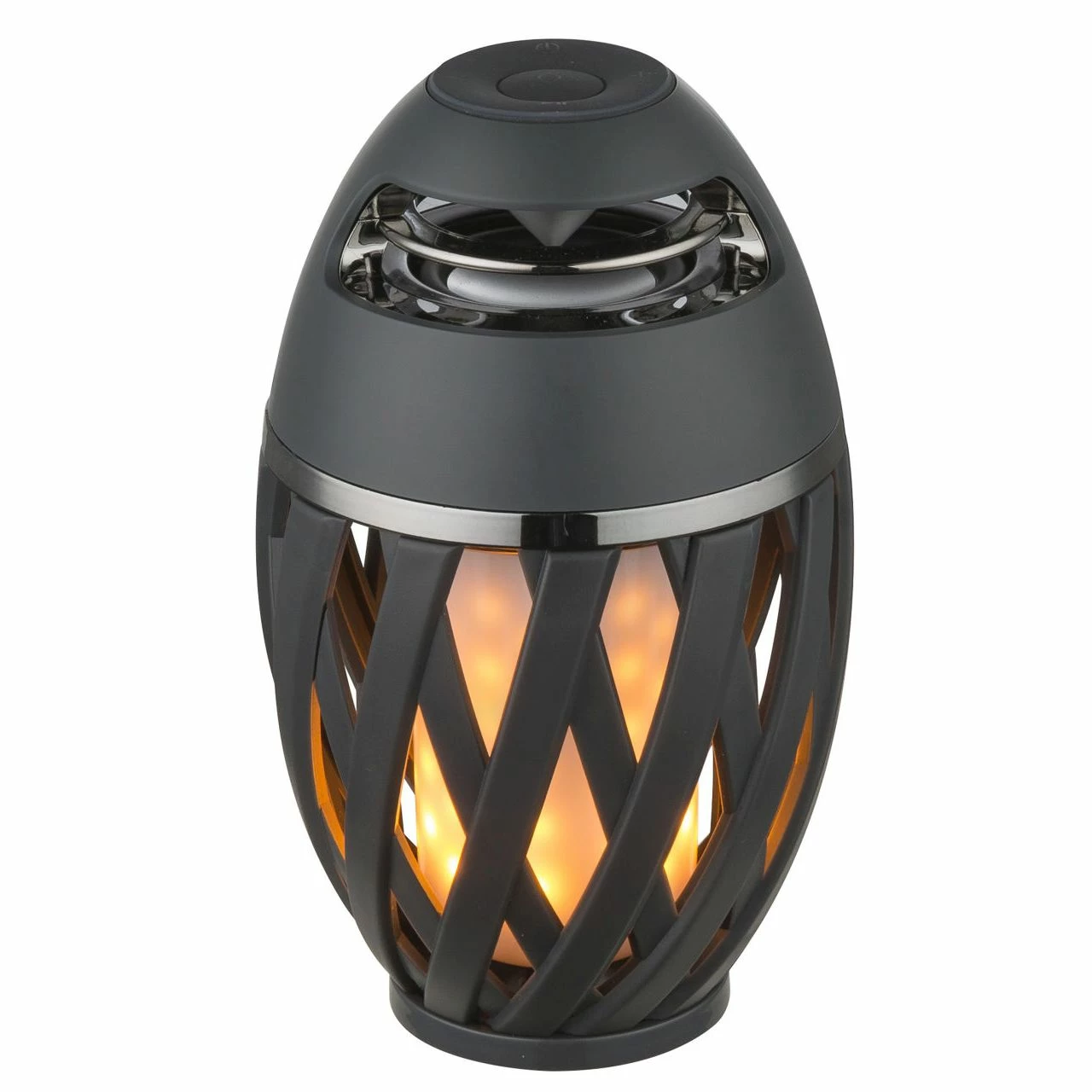 Diese Lampe aus anthrazitfärbigen Kunststoff ist Fackel und Lautsprecher zugleich. Die warmweißen LEDs flackern wie echte Kerzen und zaubern stimmungsvolle Lichteffekte. Der integrierte Lautsprecher funktioniert über Bluetooth-Verbindung und bietet 75dB Soundleistung. Dank IP65 Schutz und leistungsstarken Akku lässt sich die Leuchte mit dem Namen auch problemlos im Freien verwenden.