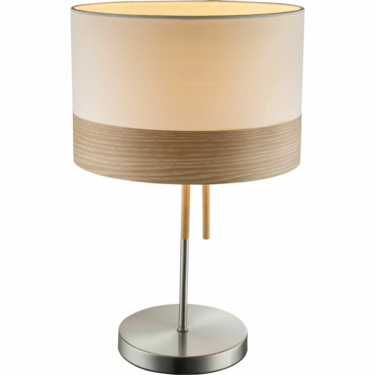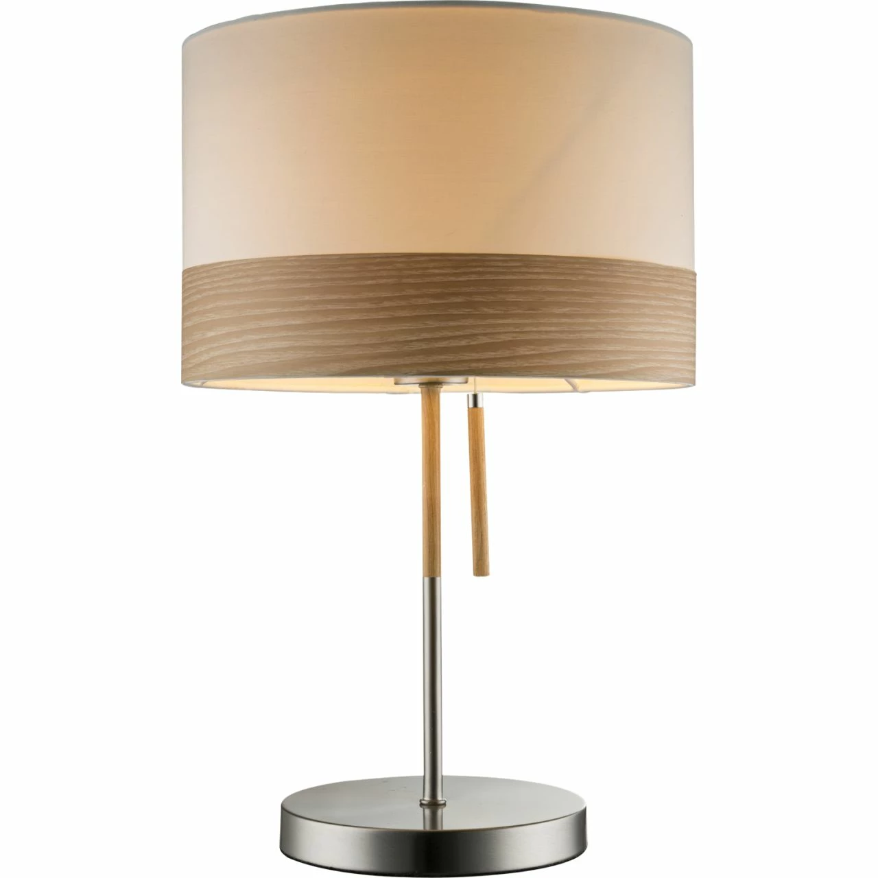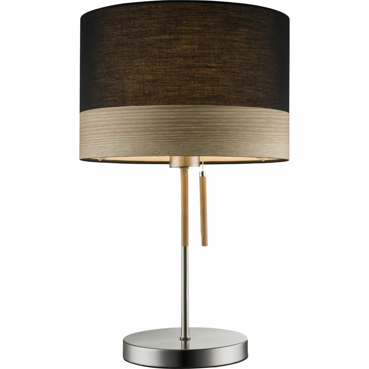 Mit Zugschalter und 40cm Durchmesser – Tischleuchte Chipsy mit Holzfurnier und Stoff in beige oder schwarz