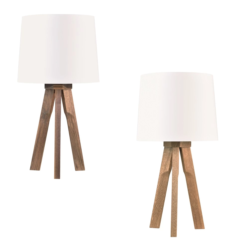 Wie bei einem Stativ bewegen sich die drei Holzstäbe von oben nach unten auseinander und sorgen so für den perfekten Halt für den tonnenförmigen Lampenschirm aus weißem Cotton. Durch den weißen Stoff wirkt der Schirm nicht zu überladen und schmeichelt mehr dem Holz und den schönen Maserungen. Das Holz der Tischlampe Tre ist wahlweise in Nussbaum oder Eiche geölt erhältlich.