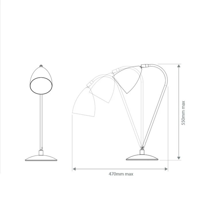 Dank Kugelgelenk können der Leuchtenfuß sowie der Schirm geschwenkt und ausgerichtet werden, die Leuchte kann ganz zeitgemäß mit Energiespar oder LED Leuchtmittel bestückt werden.