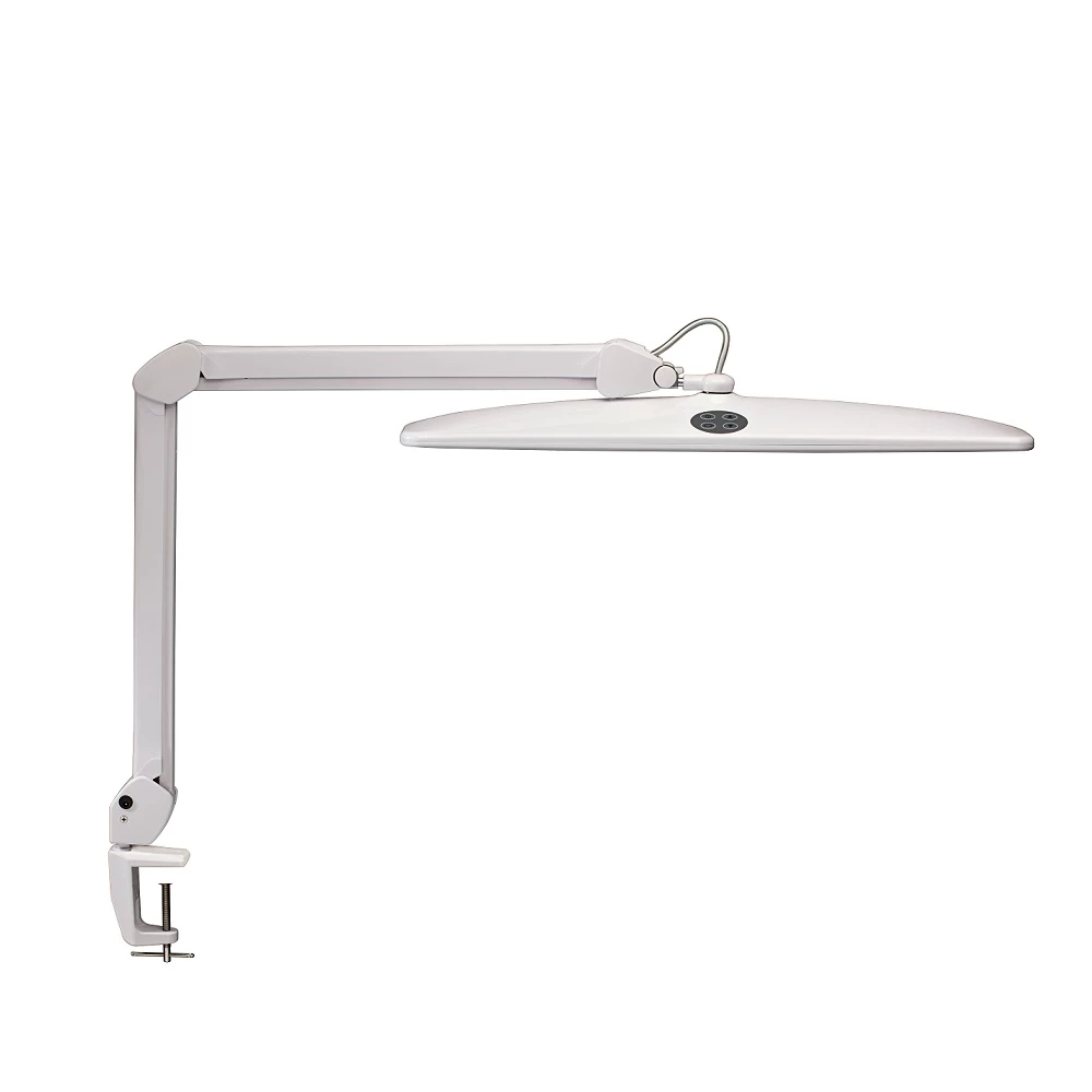 Ideal für Arbeiten in Laboren, Werkstätten, technischen Büros und Ateliers ist diese Klemmleuchte mit LED-Technik ausgestattet. Die 84 SMD-LEDs sind in zwei Bereiche aufgeteilt, diese sind stufenlos dimmbar und über das praktische Bedienelement am Leuchtenkopf, zudem getrennt schaltbar.