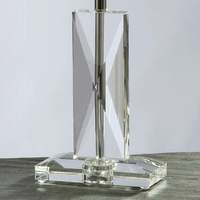 Das Glas wirkt wie Kristall und gibt der Leuchte eine besonders elegante Note. Der dazu passende harmonische Stoffschirm in schlichter Form rundet das Bild der Leuchte perfekt ab.