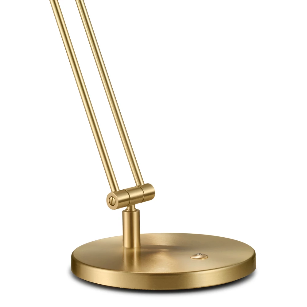 Die moderne Tischleuchte ist mit einer fest verbauten LED-Platine bestückt, deren Lichtstärke mittels eines integrierten Tastdimmers am Reflektor stufenlos variiert werden kann. Der Leuchtenkopf ist dreh- und kippbar, die zusätzlichen Gelenke am Leuchtenarm ermöglichen noch mehr Flexibilität der Tischleuchte. Für genüssliche Lese- oder Arbeitsstunden steht mit dieser LED-Tischleuchten nichts im Wege.