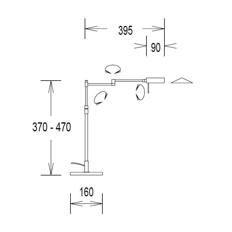 Über den zierlichen Tastdimmer, der sich direkt oben auf dem schlanken Leuchtenschaft am Übergang zum Arm befindet, ist das Licht in der Helligkeit stufenlos regulierbar.