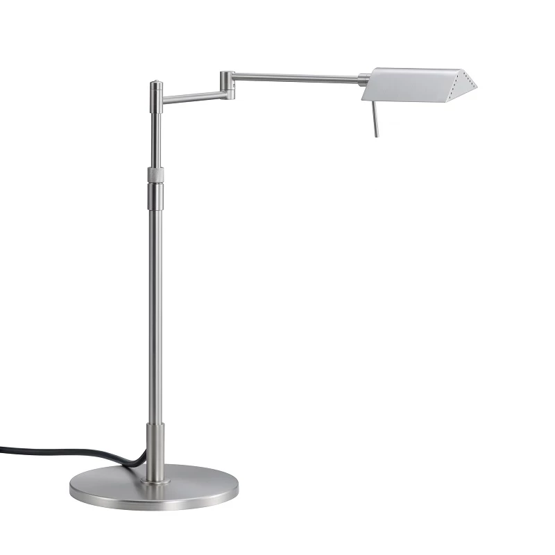 Durch ihr schlichte Form und ihr edles Erscheinungsbild fügt sich diese Tischleuchte problemlos in nahezu jeden Wohnstil ein und dient dort nicht nur als zusätzliche Lichtquelle, sondern als perfektes Leselicht im Wohnzimmer oder im Büro auf dem Schreibtisch als Arbeitslicht platziert.