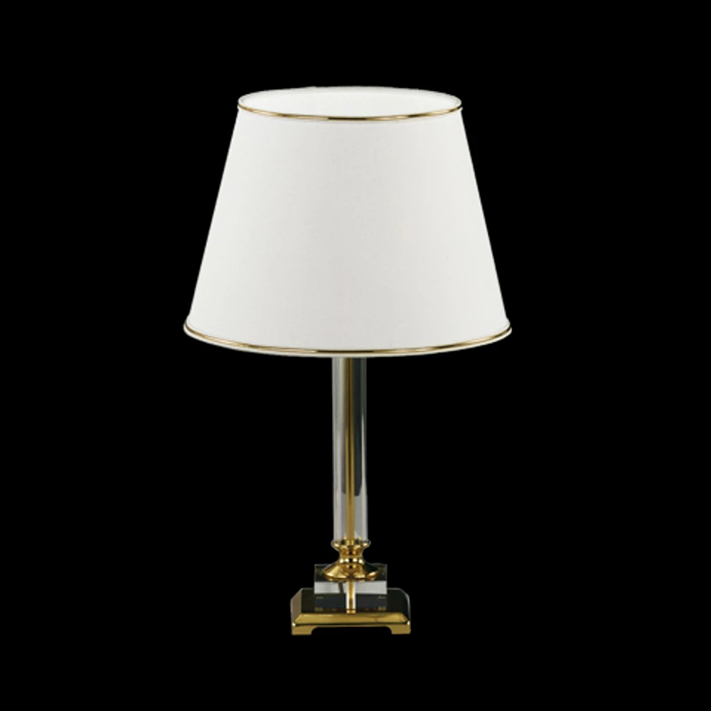 Tischleuchte mit Schirm in schneeweiß, Messing-poliert mit Plexiglas, Höhe 63,5 cm, Schalter in Zuleitung