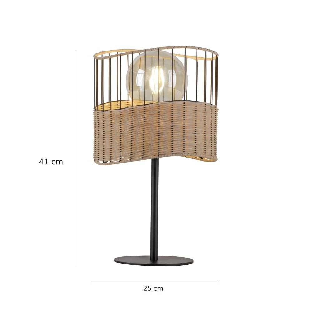 Die Tischleuchte überzeugt mit einem rustikalen, maritimen Design. Die Leuchte wird ohne ein Leuchtmittel geliefert. Sie können die Leuchte mit einem E27-Leuchtmittel bis maximal 60,0 Watt bestücken. Bestimmen Sie selbst welches Leuchtmittel Sie verwenden möchten. Die Tischleuchte wird durch die Verwendung eines Filament-Leuchtmittel ideal komplettiert und lässt Ihre Leuchte zum Hingucker werden. Per Schnurschalter lässt sich die Leuchte bequem an- und ausschalten. Die Leuchte hat eine Länge von 25,0 cm, eine Breite von 24,5 cm und eine Höhe von 41,0 cm.