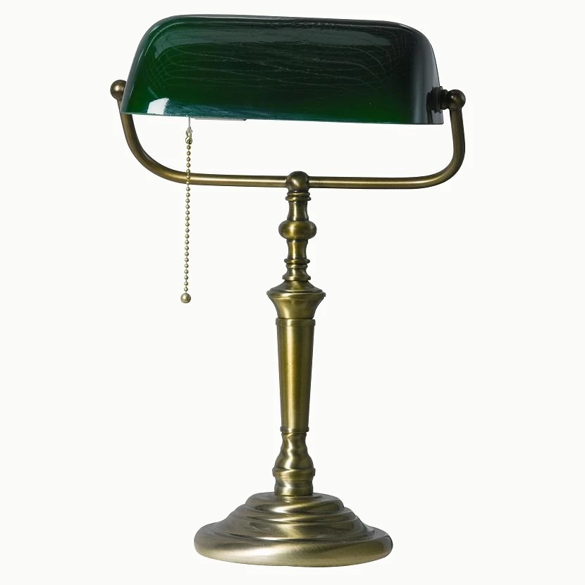 Sie ist dem Original aus den 30er Jahren bis ins kleinste Detail nachempfunden. Diese legendäre Bankerleuchte gehörte zur Wall Street wie die Queen zu England. In ihrem Schein gingen Millionenverträge über den Tisch.