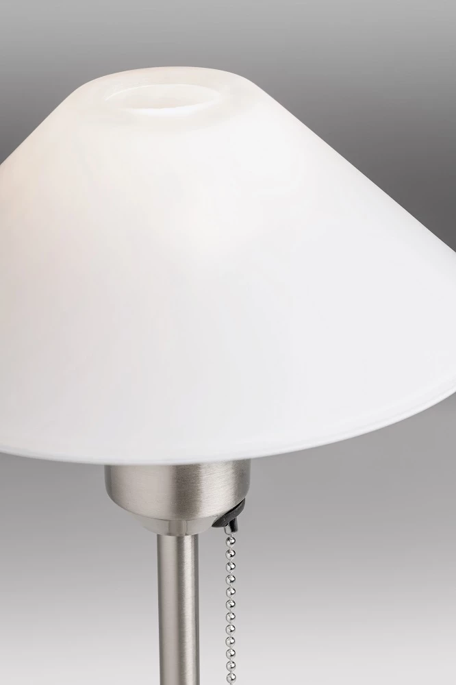 Ein Zugschalter im oberen Bereich der Leuchte lässt eine bequeme Bedienung zu und sorgt zudem für ein optisches Highlight. Eine schöne Leuchte, die sich perfekt als Nachttischlampe und Leselampe eignet.