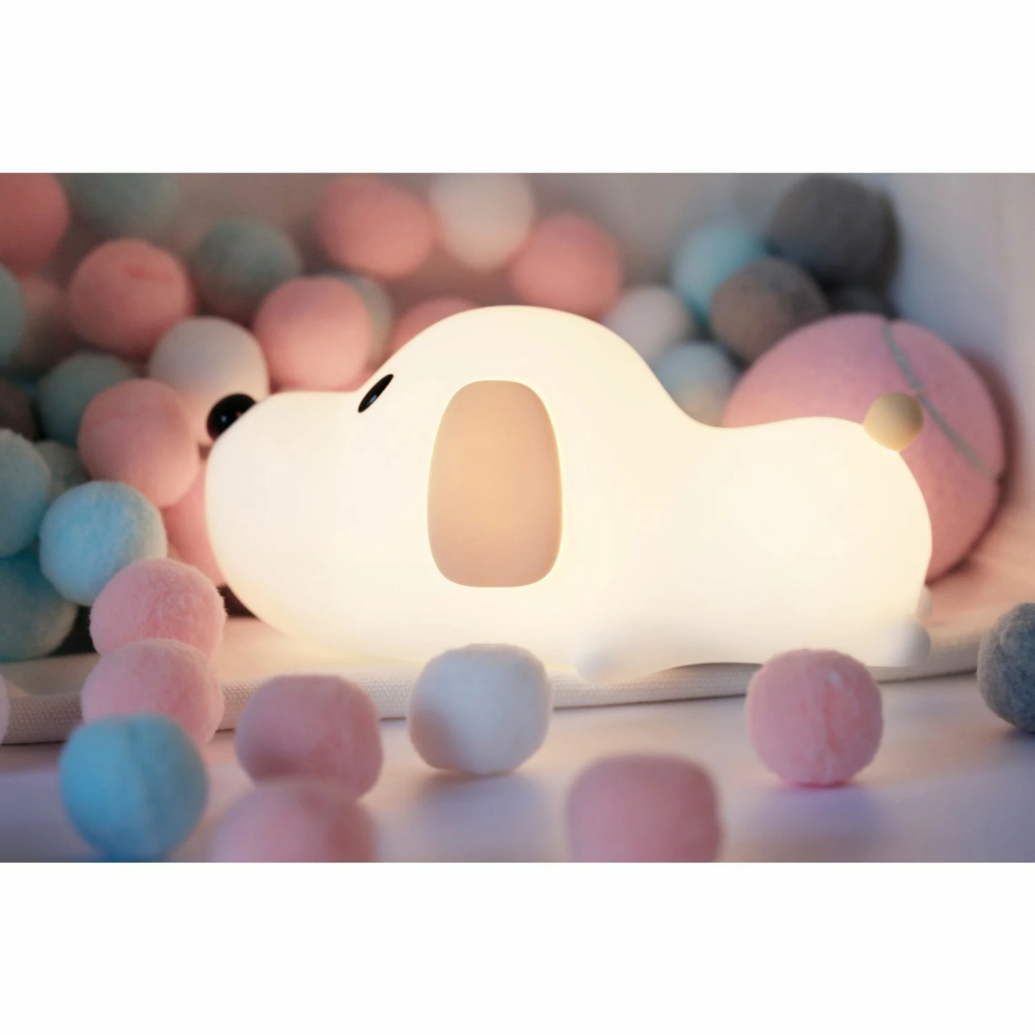 - Details: Freundliches, reduziertes Design + Angenehmes Licht (schlaffreundlich) – Spielend einfache Bedienung durch stupsen der Nase + schnelles aufladen (4,5h) + mit Timer (30min/ 1std) – Akku Lebensdauer von 5h (bei max. Helligkeit) bis zu 200h (gedimmt) + USB Kabel zum Aufladen – Anschluss / Stecker: Akku / USB