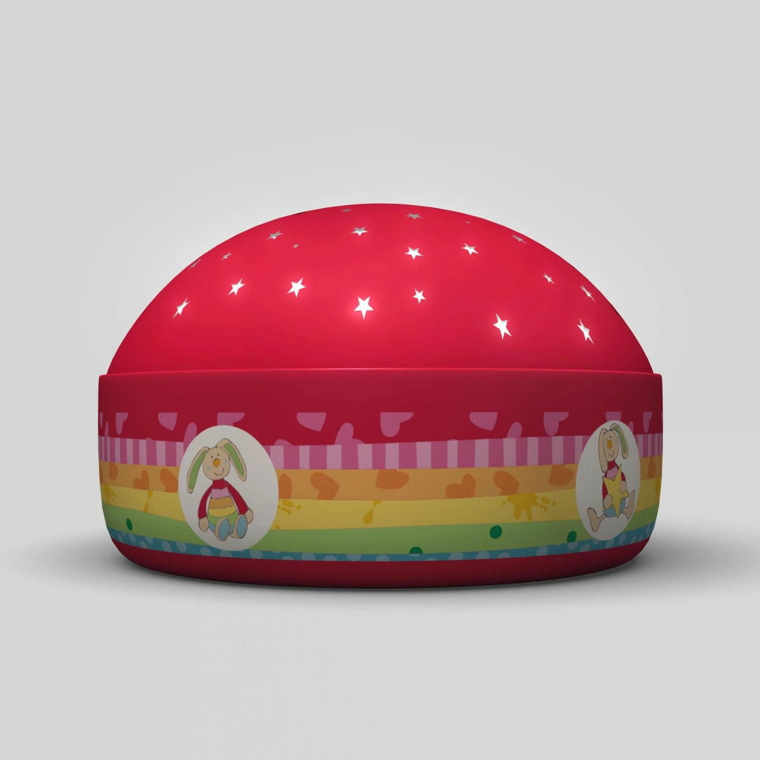 Projektions-Nachtlicht Rainbow Rabbit LED Nachtlicht mit Farbwechsler (gelb, blau, grün) Die Farben können einzeln oder im automatischen Wechsel ausgewählt werden. Das Nachtlicht Projiziert Sterne an die Zimmerdecke. Die Sterne werden bis zu 3 Meter hoch projiziert. Eingebaute Abschaltautomatik nach 45 Minuten. Das Nachtlicht ist nicht Kabel gebunden, Sie können es überall mit hinnehmen. Es ist ein treuer Reisebegleiter und vermittelt auch auf Reisen eine gewohnte Umgebung.Das Batteriefach wird mit einer Schraube verschlossen.Die benötigten Batterien (3 x AA) sind nicht enthalten.Hinweis: Das Rainbow Rabbit – Sortiment umfasst weitere interessante Produkte.