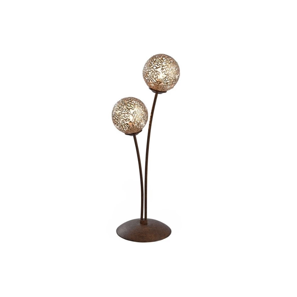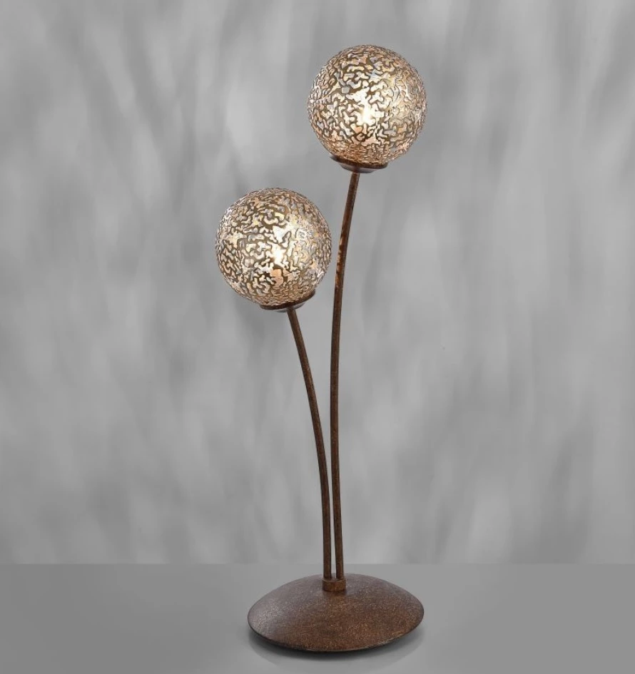 Mit einer Kombination aus braun lackiertem Stahl und einer goldfarbigen Leuchtkugel erfüllt die Tischleuchte einen dekorativen Zweck.