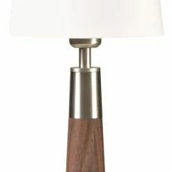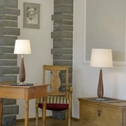 HerzBlut Tischleuchte, Nussbaum geölt, Schirm, Cotton Weiß, H= 47 o. 59 cm