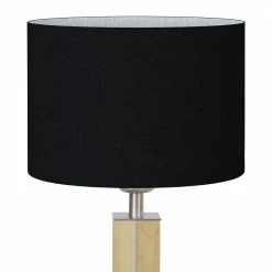 HerzBlut Tischleuchte, Stoffschirm, Schwarz, Holzfuß, Eiche o. Nussbaum o. Zirbe