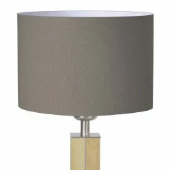 HerzBlut Tischleuchte, Stoffschirm, Taupe, Holzfuß, Nussbaum o. Eiche o. Zirbe