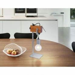 GLOBO E27 Tischleuchte aus Holz Kabel 15 m Tischlampe grau mit Schalter