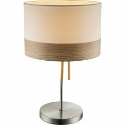 GLOBO Tischleuchte Ø 40cm Chipsy mit Holzfurnier mit Zugschalter
