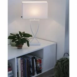 By Rydens elegante Tischleuchte mit Stoffschirm, weiß oder chrom/ silber, mit Schalter, E27, modern