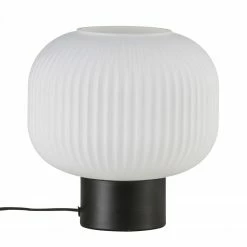 Nordlux E27 Tischleuchte aus Glas satiniert Tischlampe Schwarz mit Schalter ø 20 cm