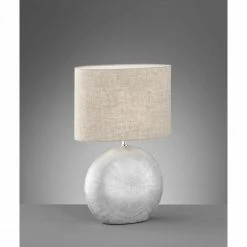 Fischer & Honsel E27 Tischleuchte mit Stoffschirm und Keramikkugel 53 cm hoch in 5 Ausführungen