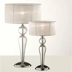 Ideal Lux Tischleuchte in chrom mit transparentem Schirm, in 2 Größen wählbar