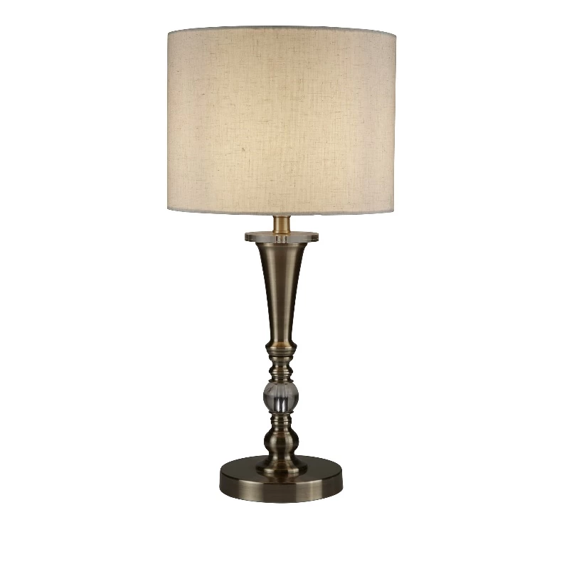 Tischleuchte im Landhausstil, messing antik, Schirm Leinen, für Leuchtmittel 1 x E27 60 Watt oder 10 Watt LED
