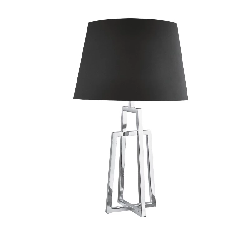 Moderne Tischleuchte mit Leuchtenfuß in Chrom und Stoffschirm in Schwarz für Leuchtmittel 1 x E27 maximal 60 Watt oder 10 Watt LED