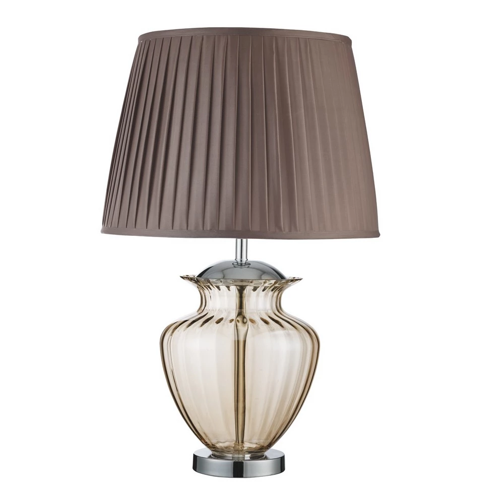 Klassische Tischleuchte mit bauchigem Glaskörper und edlem Lampenschirm aus Plissee-Stoff