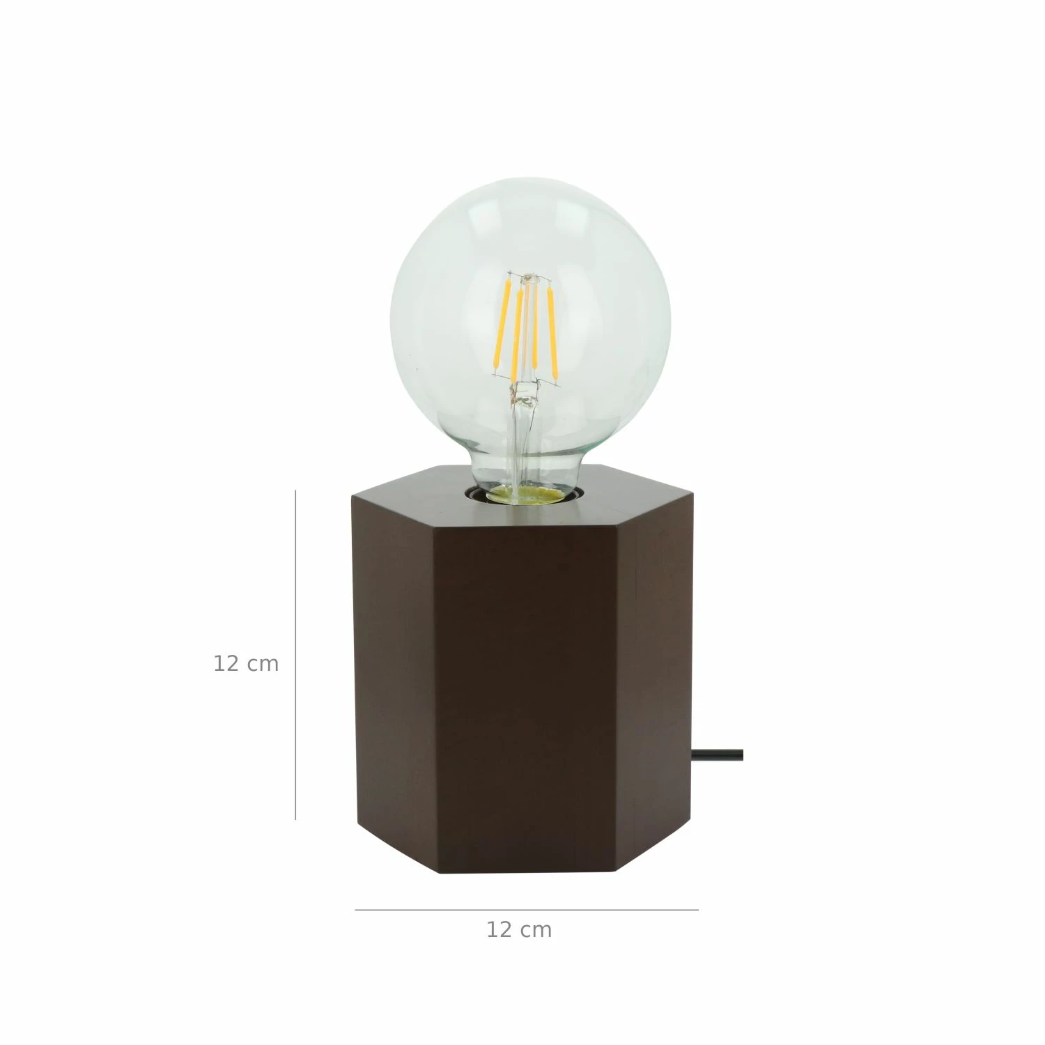 Die sechseckige Tischleuchte wurde aus Buchenholz gefertigt und wird ohne Leuchtmittel geliefert. Sie können ein Leuchtmittel (E27) Ihrer Wahl hinzufügen.