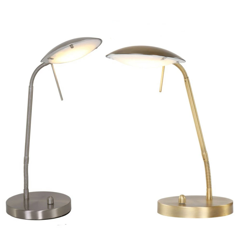 Die Schreibtischlampe aus gebürstetem Stahl hat eine LED-Armatur und wird mit einer Lichtquelle geliefert, die vom Hersteller ersetzt werden kann. Die Farbtemperatur beträgt 2950 Kelvin bei einer Lichtleistung von 800 Lumen.