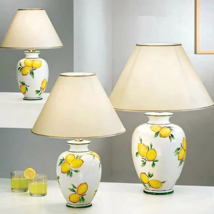 Tischleuchten, hier mit leuchtend gelben Zitronen, sorgen als dezentes Akzentlicht für eine wohnliche Raumatmosphäre und sind eine Zierde für Ihren Wohnraum.