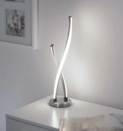 LHG Lights LED Tischleuchte modern geschwungen, dimmbar über Schnurdimmer, 12W warmweiß