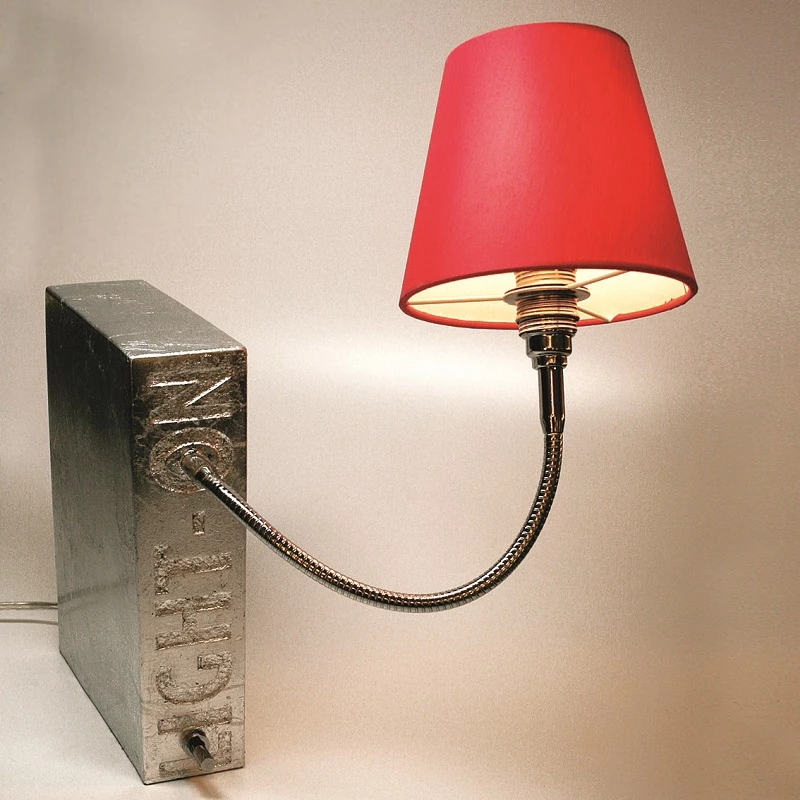 Schwere Regalleuchte und Buchstütze, individuell zusammenstellbar mit verschiedenen Leuchtenköpfen. Die verschiedenen Korpusvarianten finden Sie unter dem Reiter verwandte Artikel.