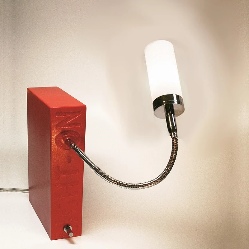 Als schwere Regalleuchte und Buchstütze begeistert die Leuchte LIGHT ON mit einer individuellen Zusammenstellung, die aus verschiedenen Korpus-, Leuchtenschirm- und Armlängenvarianten gewählt werden kann.