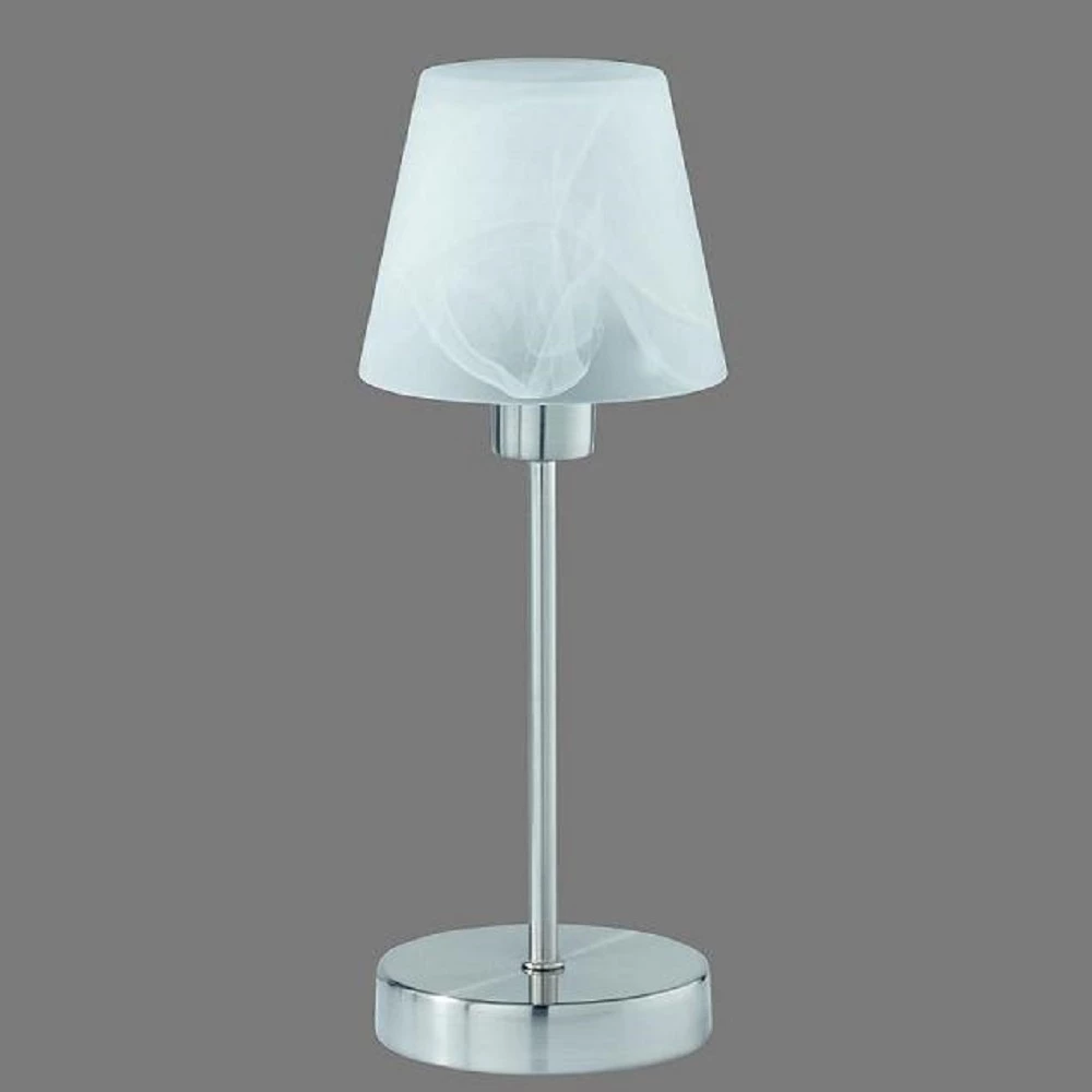 Tischleuchte Luis Nickel-matt mit Touchdimmer – Alabasterglas weiß
